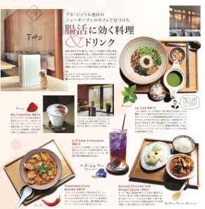 「美腸活」特集で訪れた「T42」。セガンブット地区の有名るい茶店「河婆擂茶」の新コンセプト・カフェということで、早速看板メニューのるい茶にトライ。お味は本店そのもの、翡翠色のスープはオリエンタルなポットに入ってきて何だかおしゃれ!平日の取材時で満員でしたので、予約がお勧め!