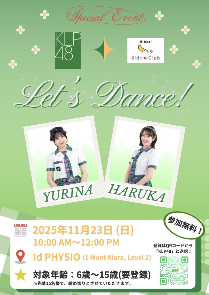 KLP48と歌って踊ろう!15名様限定の特別コラボ企画です。登録はQRコードから「KLP48」と送信して予約してください!※対象年齢は6歳~15歳