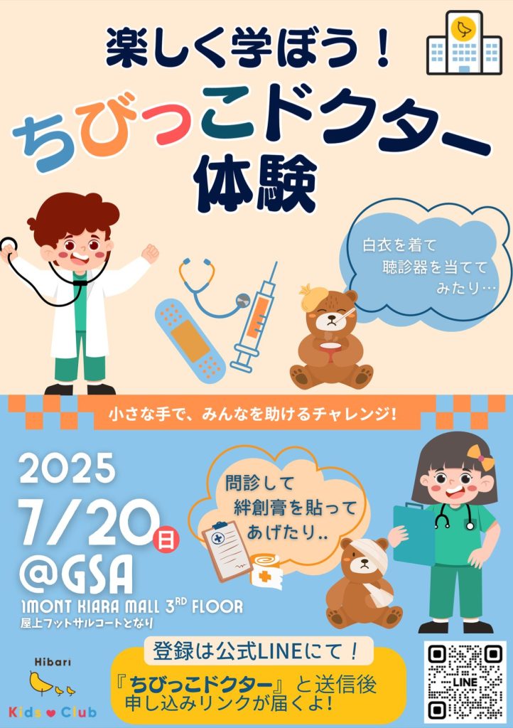 今月のテーマは 「楽しく学ぼう!ちびっこドクター体験」(お申し込みは先着順、定員に達し次第締め切ります)