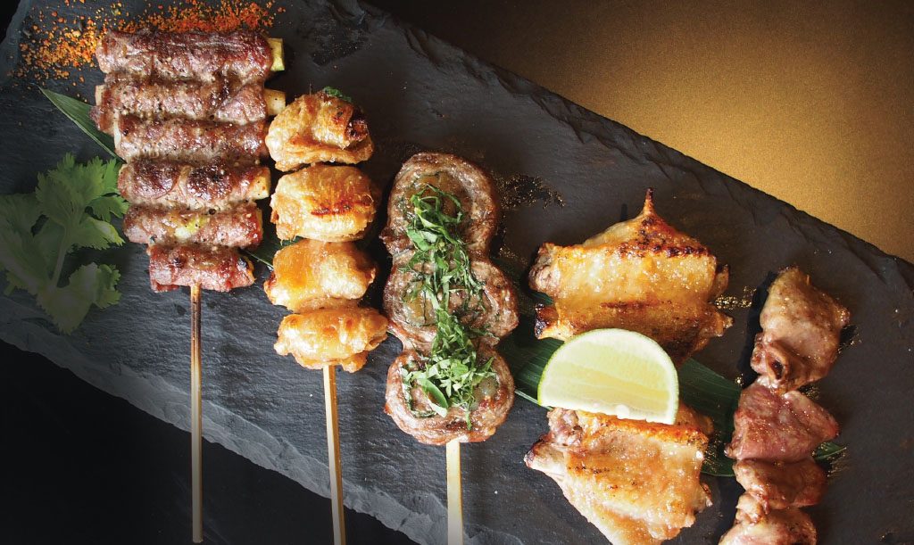 昨今、当地でも日本で注文できるような本格的な串焼きが楽しめるようになってきましたが、今月は、各店の顔とも呼べる自慢の串メニューを「串自慢」と題して、一緒に注文するのにオススメのお料理+お酒と合わせてご紹介いたします。