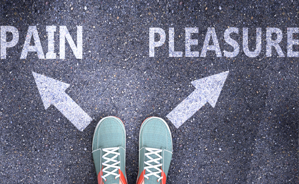 ゴルフスイングは振ることとボールに当てることの両方が必要です。人間の行動原理はシンプルで「痛みを避けて快楽を得ようとします」のでゴルフもしっかり振ってボールに当たらなくなってくると振らずに当てるスイングになっていきます。当てるだけのスイングにはスピードがありませんのでボールは飛びませんし、スイングが小さくなってトップしたりフリップしてダフったりします。すると「痛みを避けたくなるので快楽を得るために」ある人は正しい動きを習得しようと練習や学習をしますし、またある人はゴルフをやめてしまいます。優先順位としてはまずしっかり振ることが先です。力がではなく技術でシャフトをしならせてヘッドスピードを速くすることが必要なのですが、最初は振ることができてもなかなかボールに当たりません。ここでボールに当たらない不快感という「痛みを避けない」ことが大切になります。なので練習方法としてはボールを打つよりも素振りを多めにした方が良くなります。例えば練習場で1球打ったら3回素振りというように振ることを多めに行うのです。また練習場でボールを打つ場合はアイアンでも低いティアップをすると「痛みを避けて快楽を得やすくなる」のでボールに当てようとして振れなくなることを防ぐことができます。ゴルフはややもすると痛みばかりになって先にも述べたように辞めたくなるスポーツでもあります。長くゴルフをやっている人で「もう辞める」と言ってなかなか辞めない人も多いのですが。この人は「痛みを避けて快楽を得る」方法を既に知っている人ということです。人間の行動原理を上手に利用してゴルフを楽しんでいただけたらと思います。