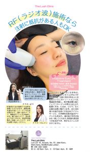 The Lush ClinicLot LG1-12, Arcoris, No. 10,Jalan Kiara, Mont Kiara, 50480 KL.Tel: 018-460-0290営業時間:火〜金 10:00am – 7:00pm、土・日 10:00am – 4:00pm、月・祝休Facebook: The Lush Clinic