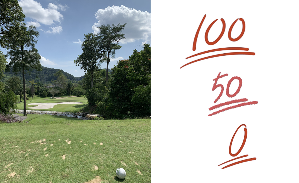 ゴルフの各ショットの場面で毎回必ず0点、50点、100点を想定する習慣を身につけていくことをお勧めします。