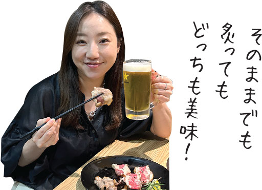 お〜!お肉を炙ると、より肉の旨みがダイレクトに伝わりますね。これは困った…ビールが手から離れません!(本誌営業ミカ)