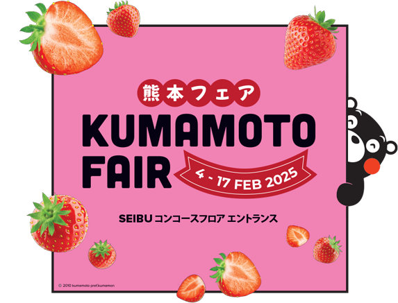 2月4日(火)〜2月17日(月)、熊本県の名産品がSEIBUに多数集結!中でも、甘さと酸味が絶妙なバランスの熊本県産の苺や、この熊本県産苺を使ったフルーツサンドイッチ、フルーツロールケーキ、苺大福にショートケーキ、チョコ掛け苺など、種類豊富なスイーツも販売予定です。
