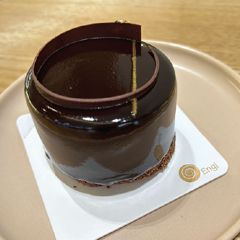 73%のダークチョコでコーティングしたムースケーキ。ビターすぎず、ほのかな甘さが子どもから大人まで人気な同店定番ケーキ。