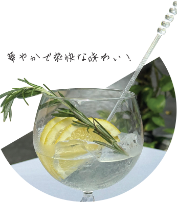 このプレミアムジンは、当地では私たちが独占輸入しているレアなお酒です。柑橘系の香りと深みのある味わいです。(シェフ ステファノさん)