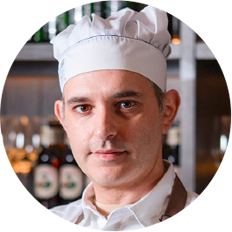 手のひらで紐状にし、そしてねじって作るユニークなトロフィエパスタ。タイガー海老などと共に、自家製ペストソースで頂きます。