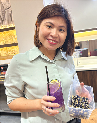 ピーチの果汁がたっぷりと入った濃厚ピーチティー。同店はドリンクメニューも豊富で、マレーシアならではの紫の色鮮やかなブルーピーフラワーを使ったドリンクも爽やかな甘味でお勧め。