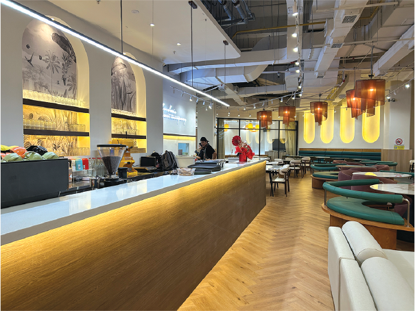 ららぽーとBBCCのJaya Grocer前にオープンした「Kita Dining」。120席を備えた広々とした店内には、曲線を活かした丸テーブルが並び、モダンで洗練された雰囲気の中にも、リラックスできる心地よさが漂います。日本人にも馴染みやすいマイルドな味付けのマレー料理は、初心者でも挑戦しやすく、日本から来た友人・家族を連れて行くのにもぴったりです。