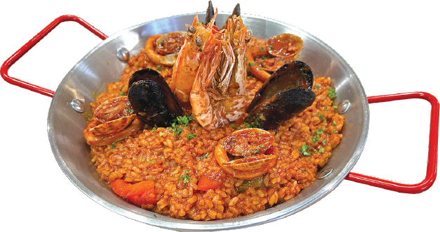 トマトソースや魚介の旨みをたっぷり吸い込んだパエリア。盛りだくさんのシーフードと満足感あるボリュームで、この価格はかなりお得感あり!