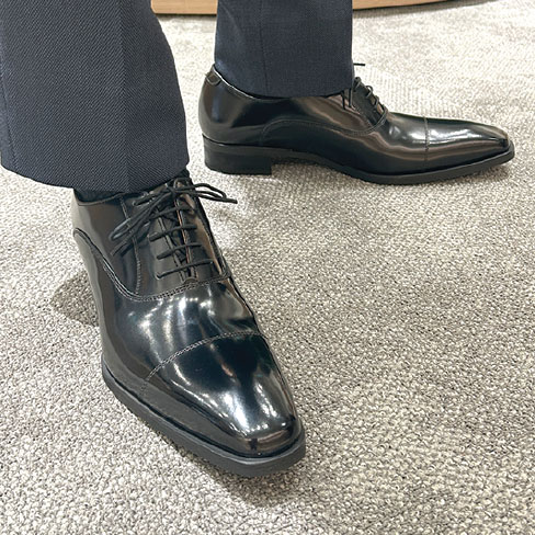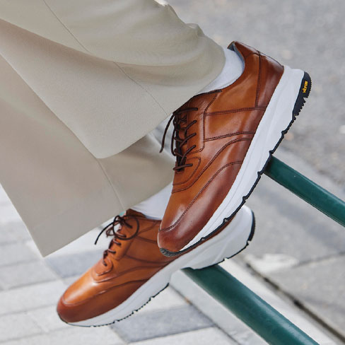イタリアの本革を使用し、光沢のあるアッパーと、ウエストが絞られたシャープなソールが特徴。足を長く見せる「流れるようなデザイン」が取り入れられており、タイトなシルエットのパンツとも相性抜群。