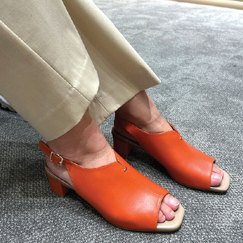 ホールド感のあるデザインで、足をすっきり見せるシルエット。羊革の柔らかいレザーを使用していて、ヒールの高さが4cmで安定感もあります。