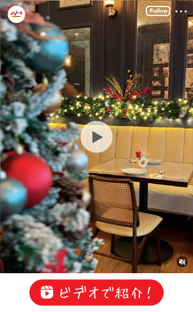 美しいクリスマスデコレーションと店内の暖色の照明はデートにもぴったりの雰囲気ですよ。(本誌営業ミカ)