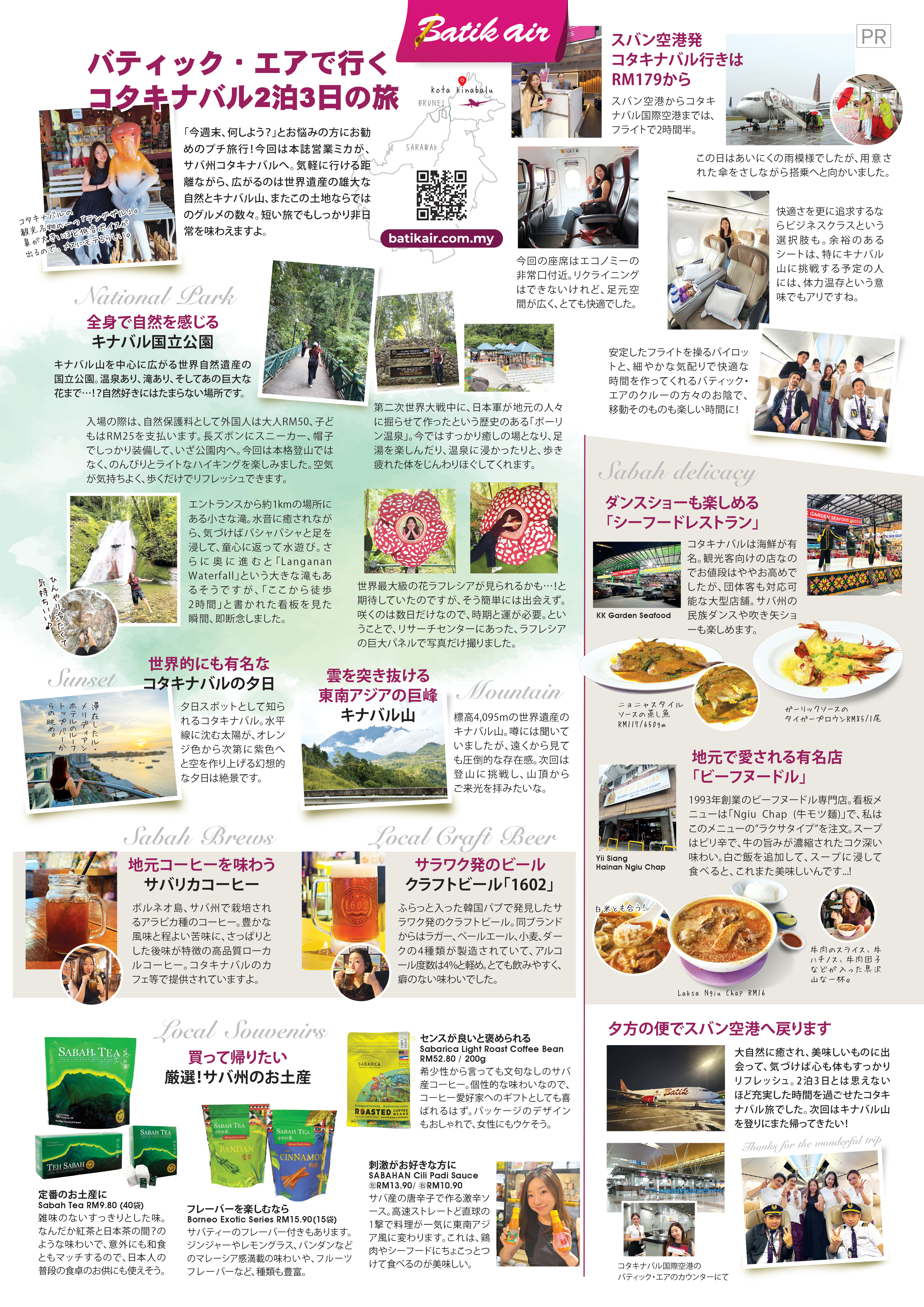 「今週末、何しよう?」とお悩みの方にお勧めのプチ旅行!今回は本誌営業ミカが、サバ州コタキナバルへ。気軽に行ける距離ながら、広がるのは世界遺産の雄大な自然とキナバル山、またこの土地ならではのグルメの数々。短い旅でもしっかり非日常を味わえますよ。