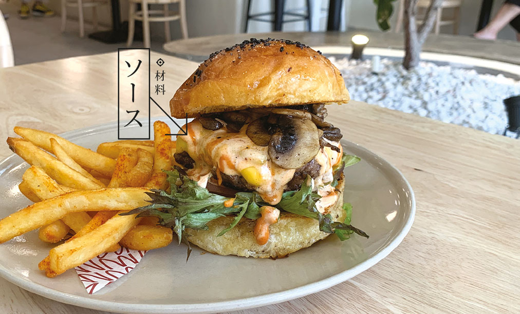 ここを楽しんで自家製ソースに「ラ・チナータ」を使用したビーフバーガー。ラ・チナータの持つスモーキーな風味と大地の香りが詰まったキノコとの味の競演を味わってください。