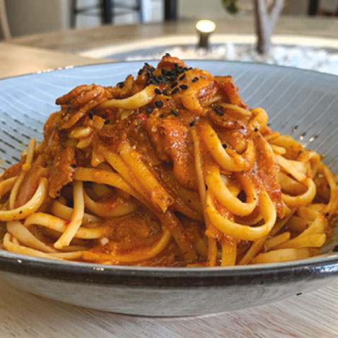 Chili Bacon Pasta RM20見た目普通のトマトパスタのようですが、実はマレーシアの人気料理「チリクラブ」のソースをアレンジしたものなんです。
