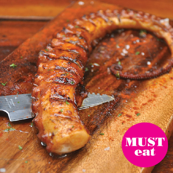 足一本丸ごと使用したスペイン産のグリルオクトパス。肉厚&柔らかな食感を味わって。