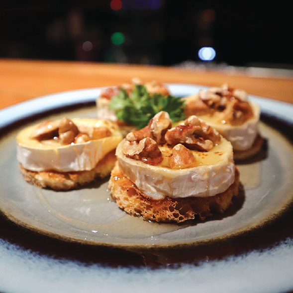 軽く炙った温かな山羊チーズと、蜂蜜・クルミでまろやかに仕上げたタパスメニュー。