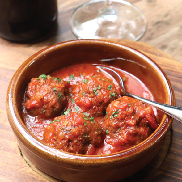 適度な辛味を利かせたトマトソースで煮込むスペイン風肉だんご。