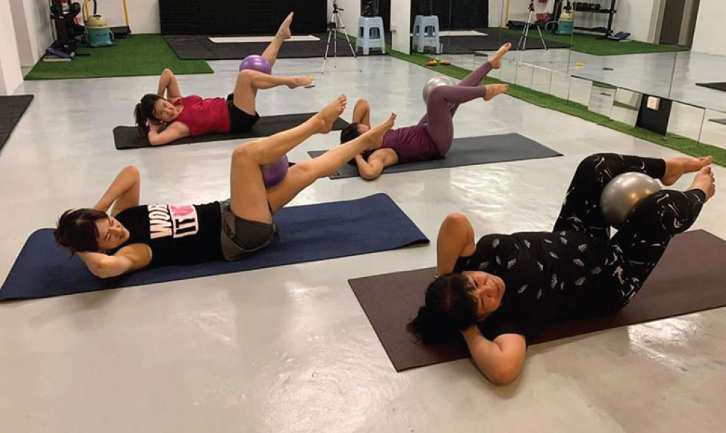 ピラティスクラスでは、ゴムバンドやボールを使いながら、狙った筋肉や部位により負荷をかけ効果的に鍛えていきます。